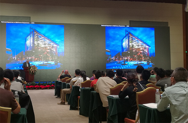 與會期間,國內(nèi)外行業(yè)專家在水母飼養(yǎng)繁殖、海洋生物保育、科研成果、展示經(jīng)驗(yàn)、進(jìn)化遺傳等技術(shù)領(lǐng)域進(jìn)行學(xué)術(shù)分享,圍繞“公共水族館的建設(shè)發(fā)展”、“珍惜水母品種的科研及繁育”、“空氣/水質(zhì)/噪音等環(huán)境因素對于海洋生物的影響”、“海洋動物的救治”等多主題展開專項(xiàng)交流和研討。其中,來自俄羅斯濱海水族館、俄羅斯科學(xué)院東岸分院的Khaidarov Marat(俄)發(fā)布的《濱海水族館的水母展示和科學(xué)潛力》深入解讀了水母課題研究,結(jié)合開展海域野捕資源的調(diào)查,圍繞水母DNA序列、毒素、增值放游、稀有種類繁殖及有性繁殖等重要方向進(jìn)行深入研討,展示了水母研究的新成果。